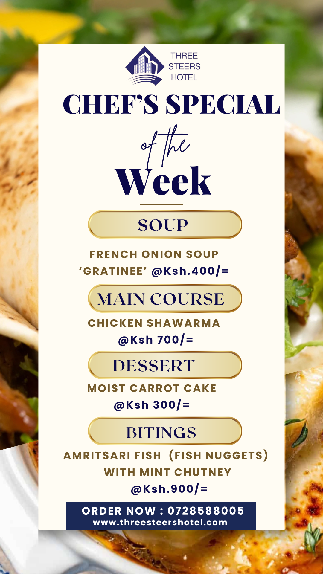 reservation[at]threesteershotel.com | +254 728 588 005, +254 735 497 772